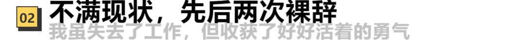 还有的人是“裸辞惯犯”,喜欢内容行业却总因为公司转型导致被转去做推广,至今还在寻找可以长期做内容的企业,但如今随着年纪增长,发现再也不敢裸辞。
