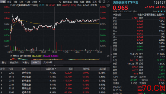 港股医疗板块连跌多日后终于迎来反弹,港股通医疗ETF华宝(159137)下探历史新低后回升,日线终结六连阴。药明系CXO强力助攻,药明合联涨8.23%,药明生物涨5%,药明康德涨3.21%。