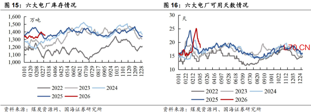 本周六大电厂可用天数环比下降:截至3月6日,六大电厂可用天数为18.1天,周环比下降3.2天