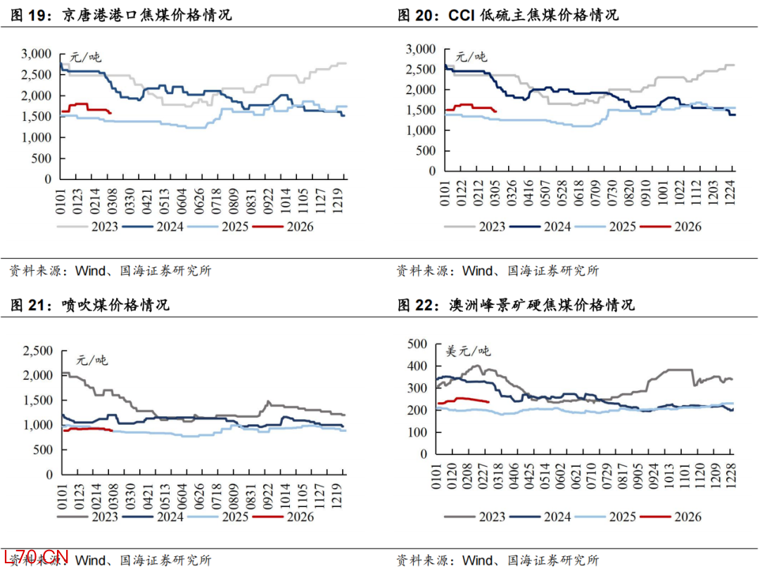 2.1、焦煤价格:港口焦煤价格环比持平