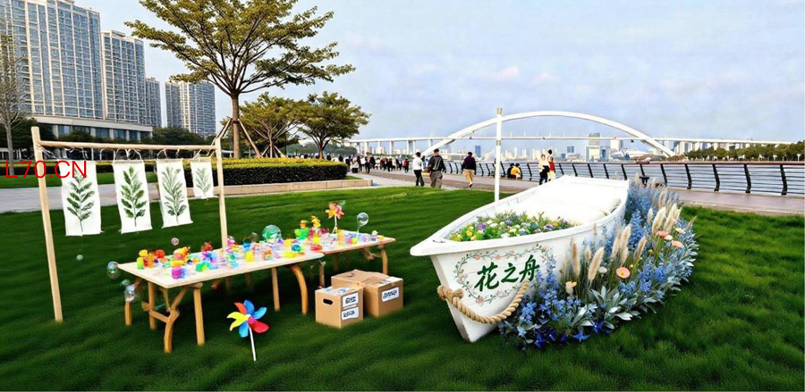 “有了船,她又有了新的灵感,觉得可以造一个码头,一个摆满玩具的码头。”陶睿茜笑着说,码头肯定造不了,但可以在船边放几张桌子、几个箱子,摆上玩具风车、泡泡液、沙包、花绳,让大孩子、小孩子都能“坐着花船去春游”。