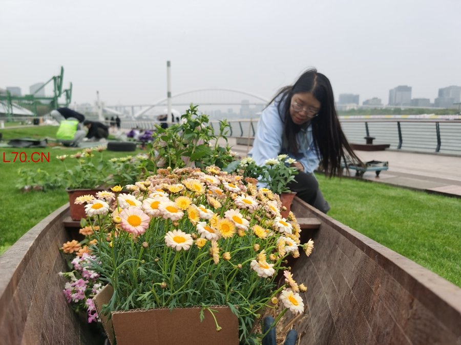 把一盆盆蒲公英往花船上搬,陶睿茜告诉记者,这是会开出桃色花儿的蒲公英,也是女儿在家里阳台上最喜爱的花,“等到花卉节开幕,她想坐在花船上吹蒲公英,看它们的绒毛飘向远处的卢浦大桥”。