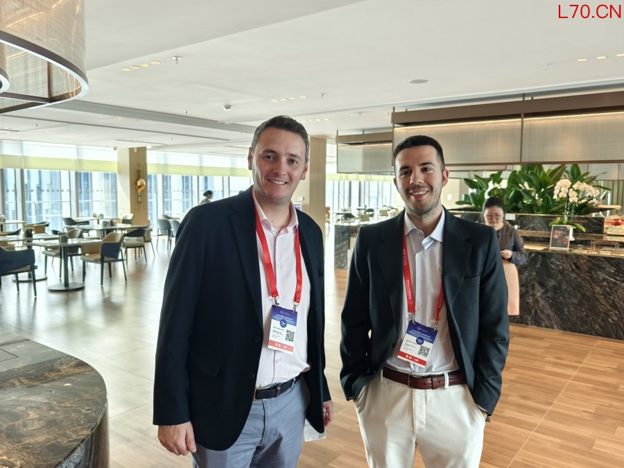 拉斐尔·洛里丹(左一)在会议现场与同行交流。