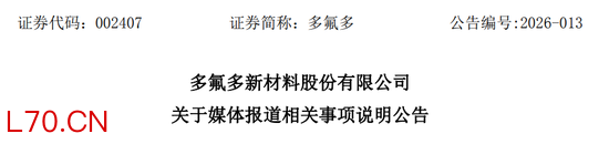 公告披露,亿丰电子为多氟多控股子公司,2025年营业收入3115.20万元,净利润-338.72万元,占公司合并收入及净利润比例较低,其中收入占比不足1%。同时,多氟多还郑重表示,经公司核查,亿丰电子未与媒体报道的涉事企业企业建立任何形式的业务合作、品牌授权或产品生产关系,其生产、销售行为与公司及控股子公司无任何关联。