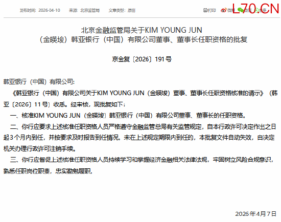 KIM YOUNG JUN(金暎埈)获批担任韩亚银行(中国)董事、董事长